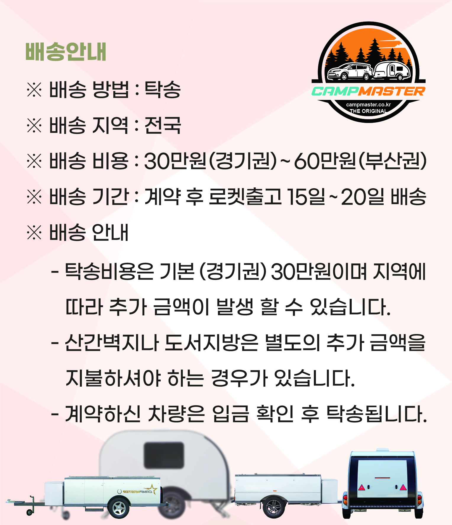 경차(RAY)이상 견인 가능하고, 별도 운전면허는 불필요카라반 상담 및 구매문의 : 0507 - 1403 - 7945